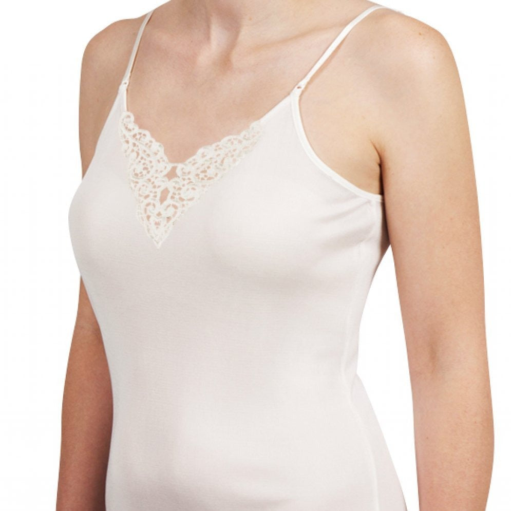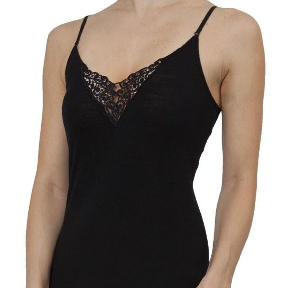 This soft pure Merino wool camisole has a gorgeous Guippure Lace motif across the neckline. It is a 1x1 rib 200GSM fabric. Adjustable straps ensure an easy fit. Merino wool will keep you warm as a winter underlayer or keep away odour on a hot summers day.