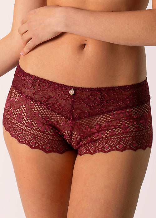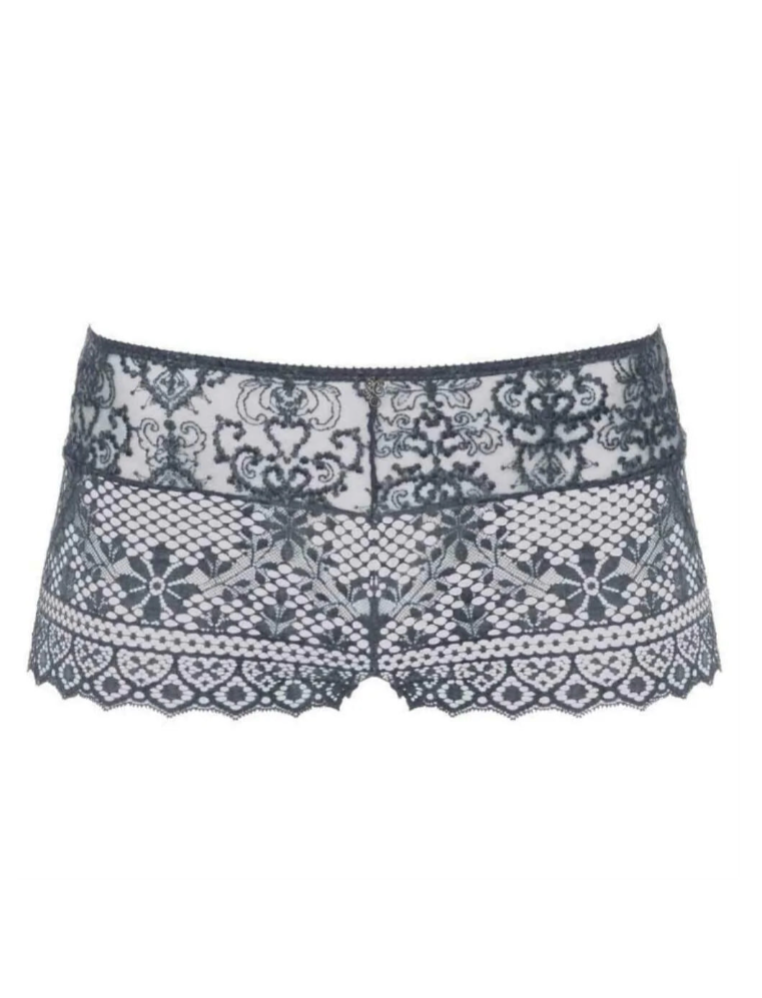 These gorgeous briefs are part of Empreinte much loved Cassiopee collection. With delicate floral lace across the entirety, they pair perfectly with the Cassiopee bras. The shorty style sits low and wide at the hips, with a boy short cut.