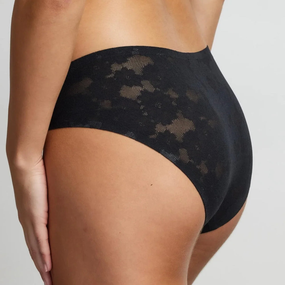 Super soft underwear designed with smooth allover floral lace and flat bonded edges for a flawless, invisible fit. Black lace briefs, stretch for comfort, all over lace design and high cut leg.