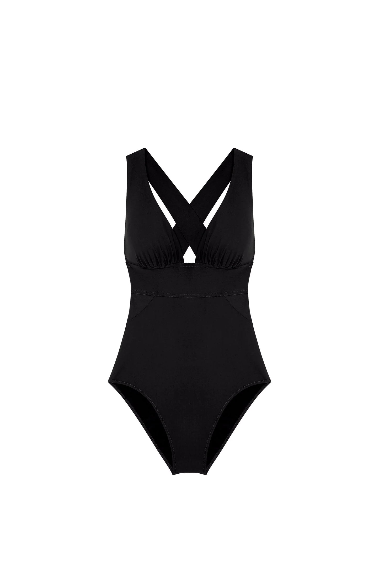 This stunning racerback swimsuit from luxury French brand Pain de Sucre is a must have for every swimmer. Gathered cups with lining and a wide support band under the breasts provide support and lift, whilst a deep front and sweeping backline reveal skin. Lightweight and quick to dry it is the ideal travel piece.