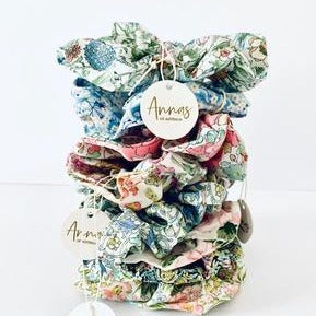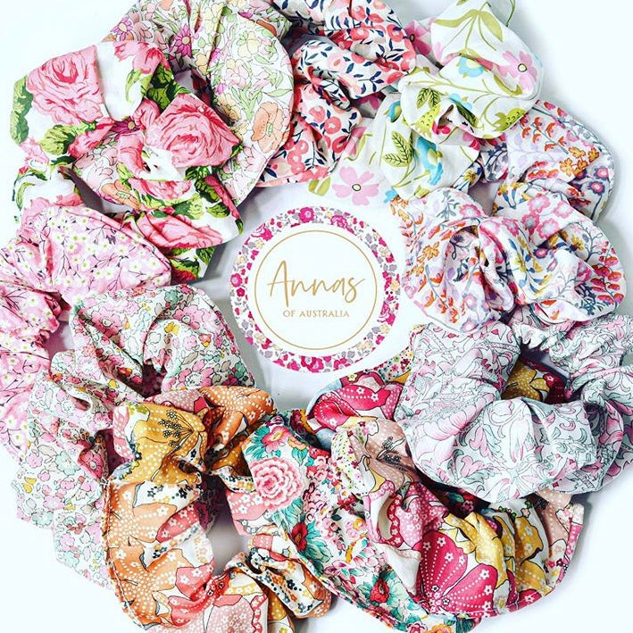 Liberty London produces some delightful, bright and happy prints. These cotton hair scrunchies each have a unique Liberty London pattern adorning them.
