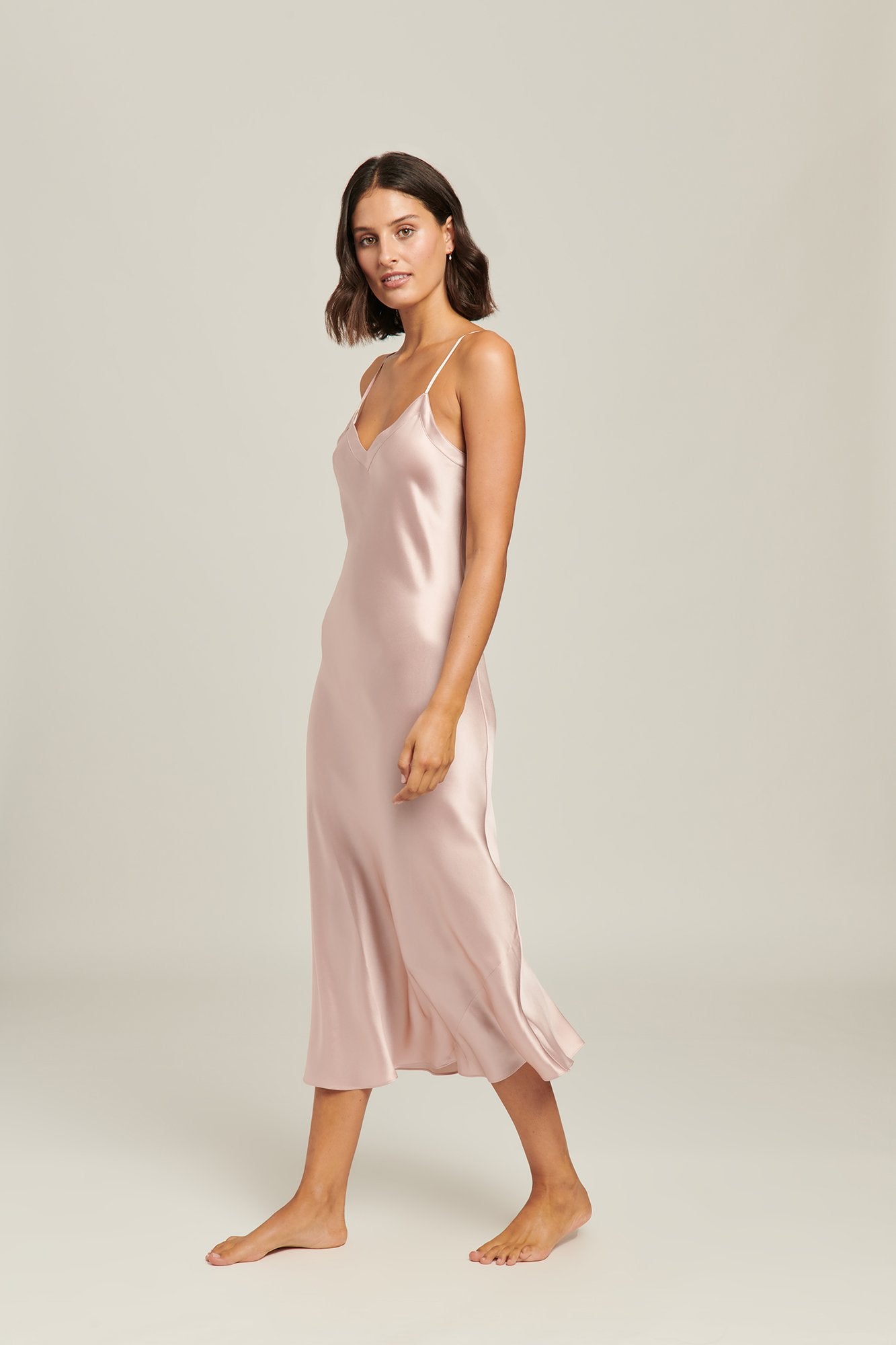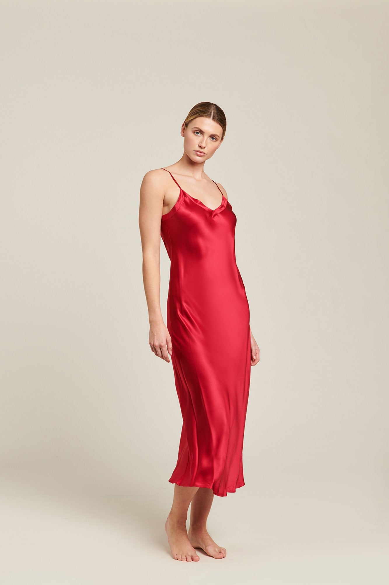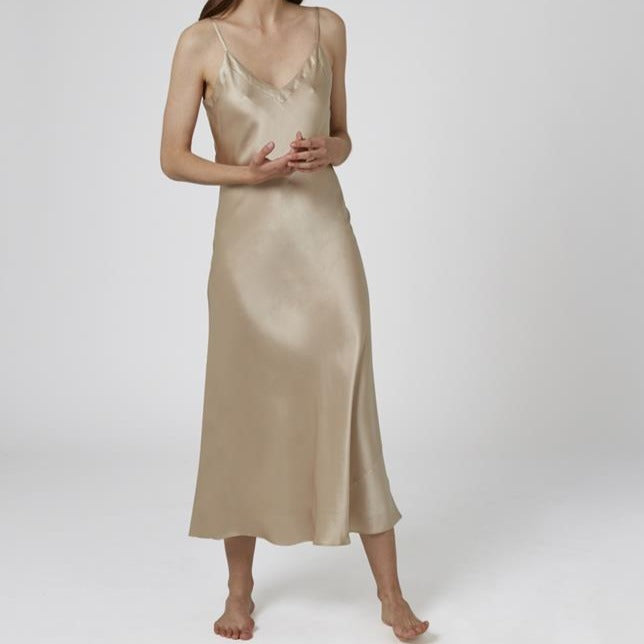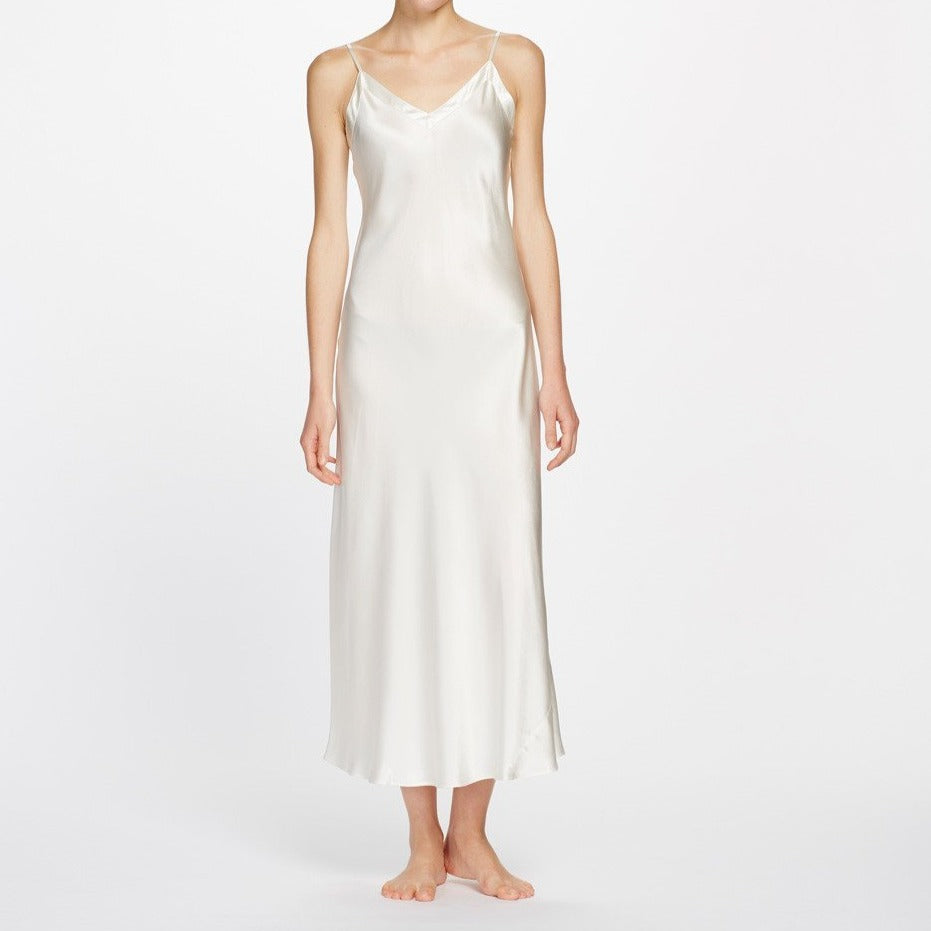This luxurious ankle length nightgown from Ginia is crafted from the most delicate of pure silk. With a fluted hemline and a flattering V neckline, it's designed purely to flatter the body. Adjustable straps allow for a customised fit.