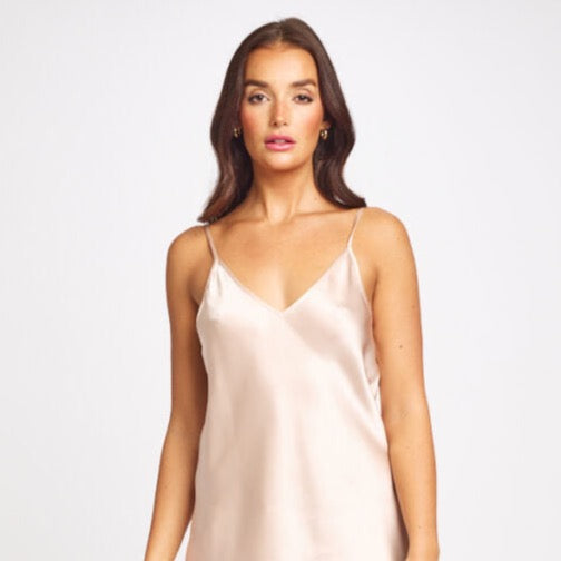 A beautiful premium quality silk chemise that drapes over the figure gracefully. So comfortable to wear and ideal to sleep in. Adjustable straps and a v-shaped neckline flatter everyone.