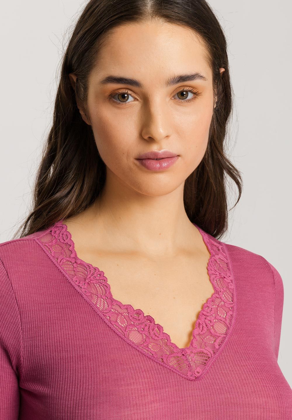 - V-neck lace neckline