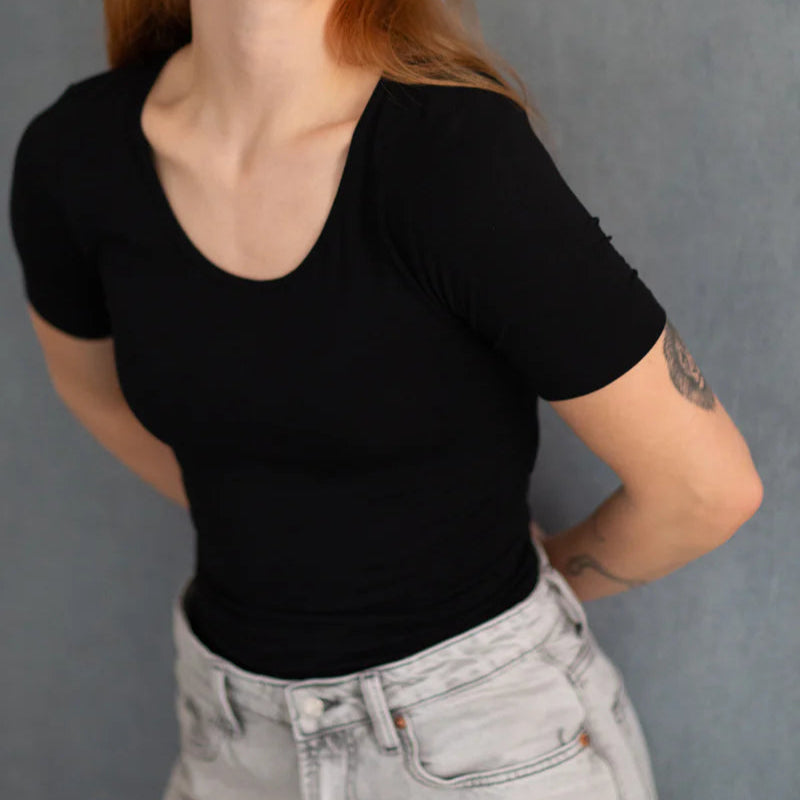 The Venus Short Sleeved Scoop Neck Top from Italian brand Madiva has a stylish fit and super soft to touch modal jersey. With a stylish and versatile cut it can be worn as an underlayer, outerlayer or sleepwear. Madiva garments are made in Italy using their own fabrics