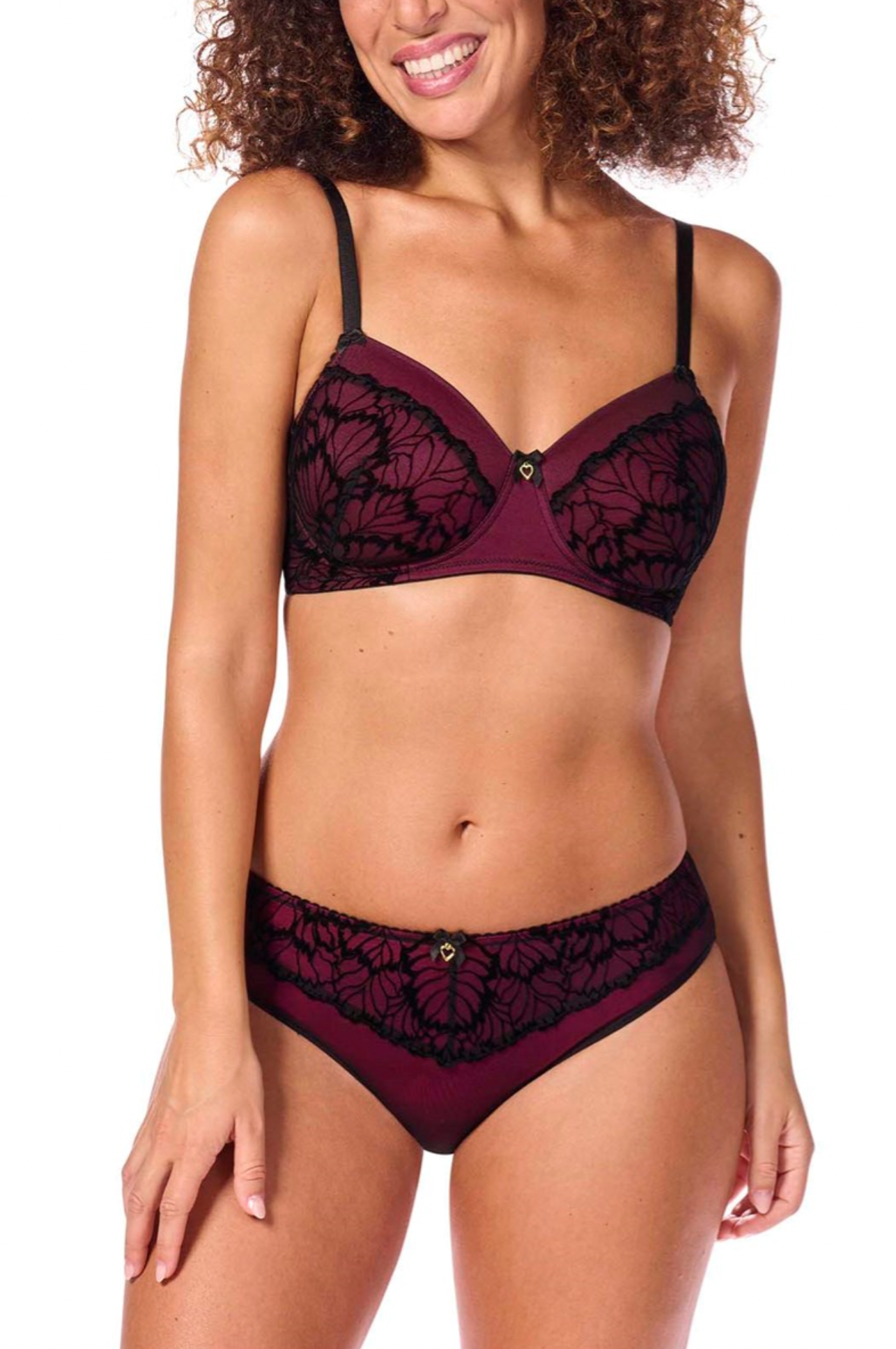 The Leonie Wirefree Padded Bra has been created specifically for Breast Care Awareness Month, allowing you to show your support. The Leonie Bra has pink moulded cups that are soft and decorated with contrasting black velvet lace, adding a touch of sophistication. Discreet bilateral pockets allow for accomodation of prostheses if desired and are made with soft microfibre fabric for comfort. A bow with a decorative heart pendant is a stylish detail and matches with the Leonie Briefs for a beautiful set!