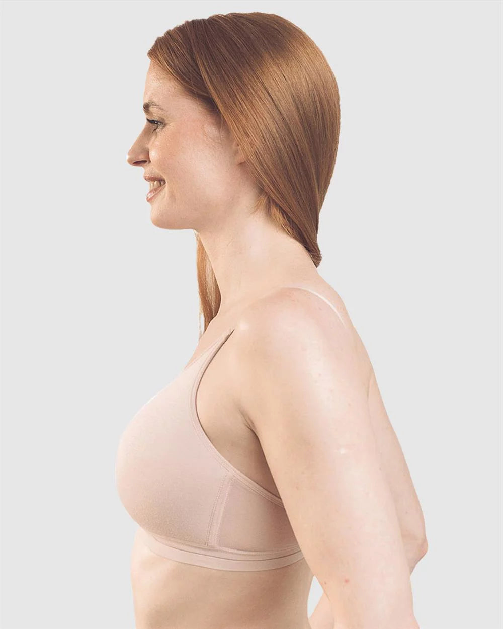 Sized especially for teens or petite bodies, this wireless bra is made from soft, viscose-blend fabric and has lightly-padded cups that look completely smooth under clothing. Ideal for both sports and everyday wear, it can be converted into a racerback bra style via a J hook.