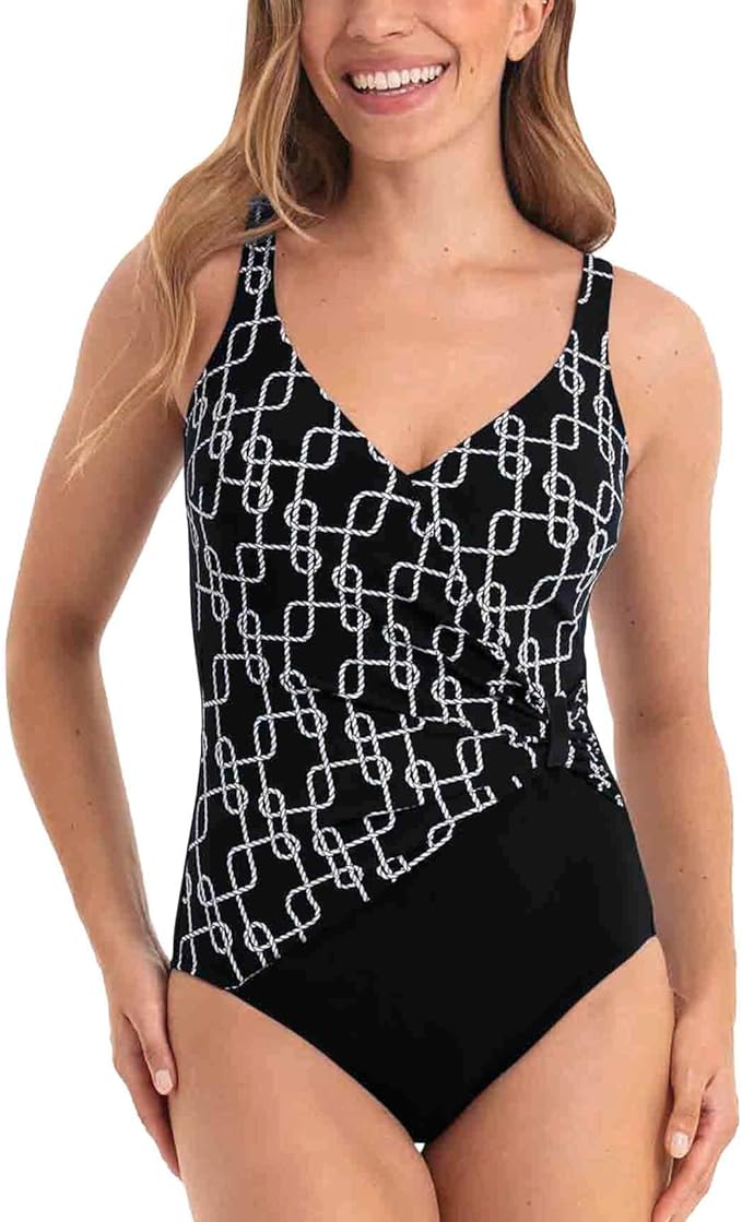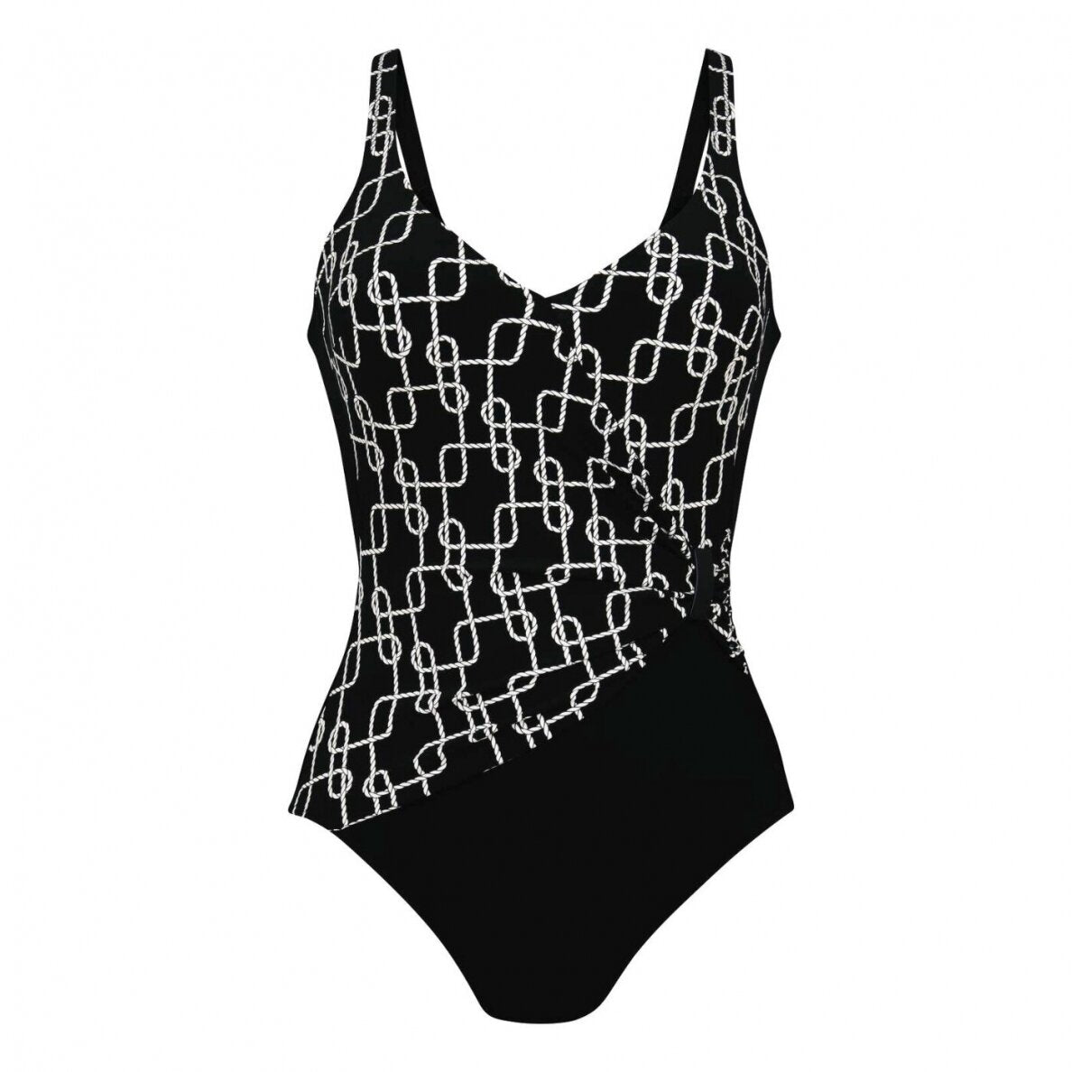 Refined & figure-flattering! This swimsuit with moulded cups creates a slim, feminine waist with a "slimming effect" thanks to its asymmetrical gathered sections at the sides. The graphic look comes into its own when combined with elegant black.