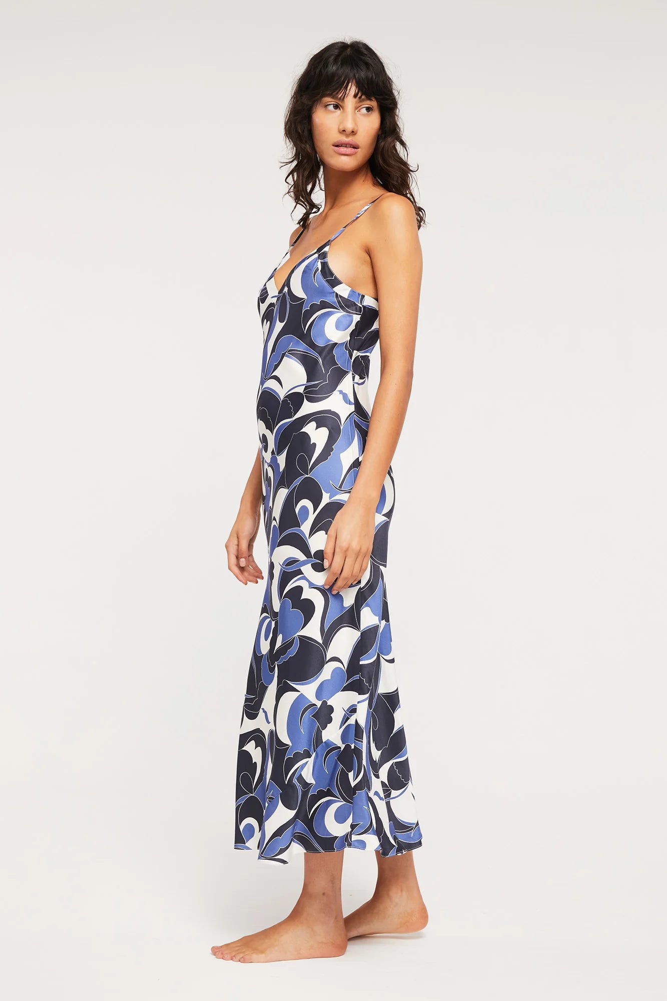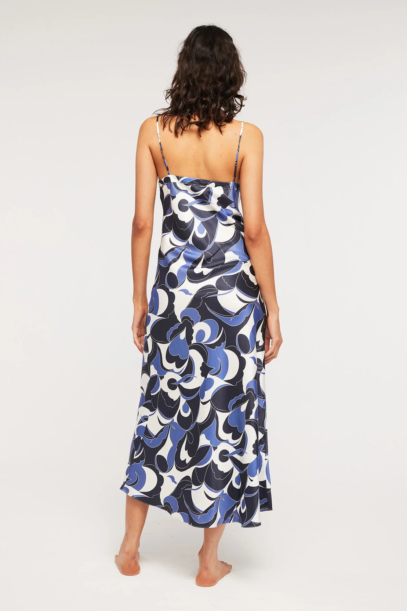 Featuring fine adjustable straps and flared skirt, with a beautiful drape and a flattering fit.
