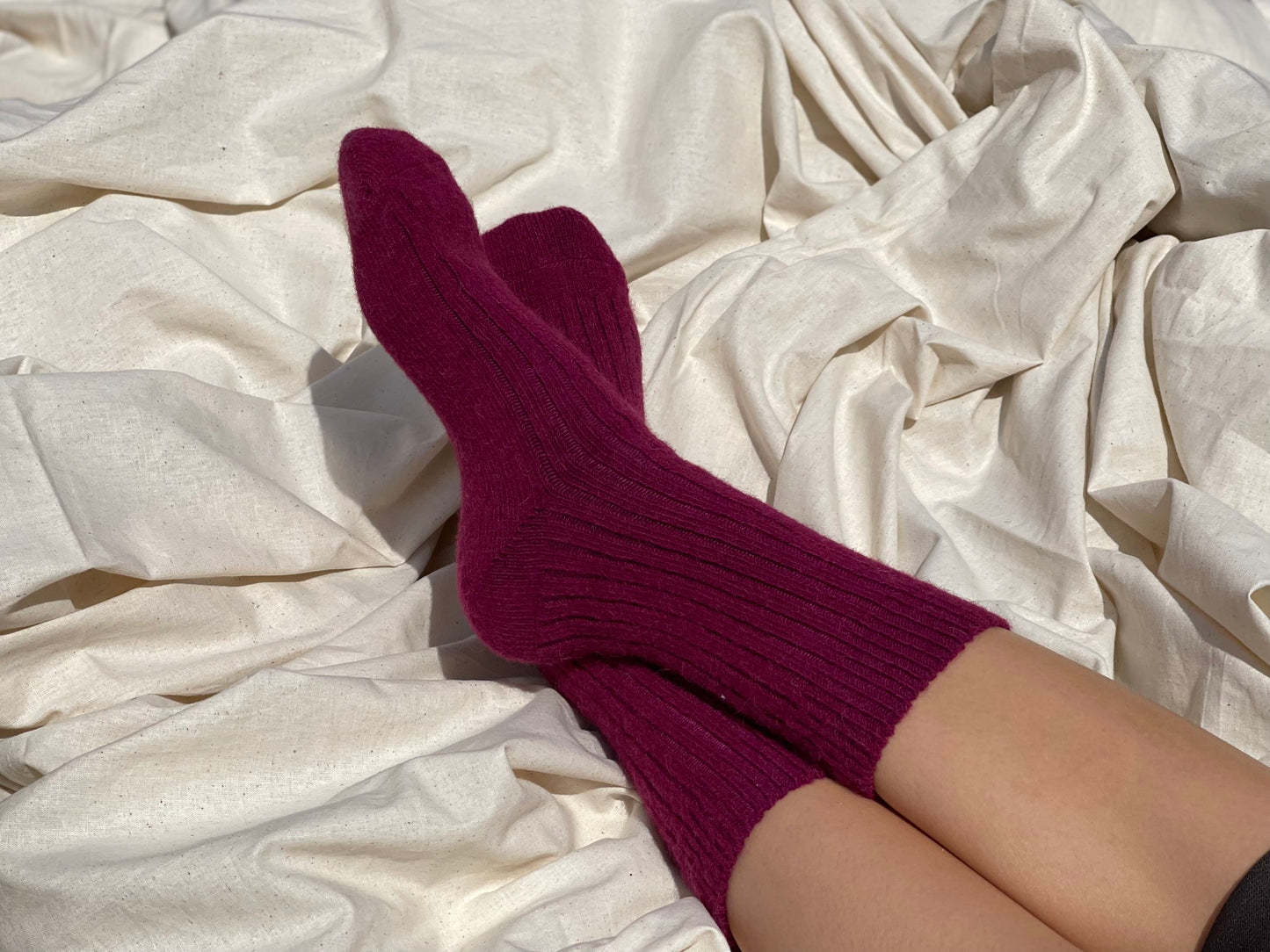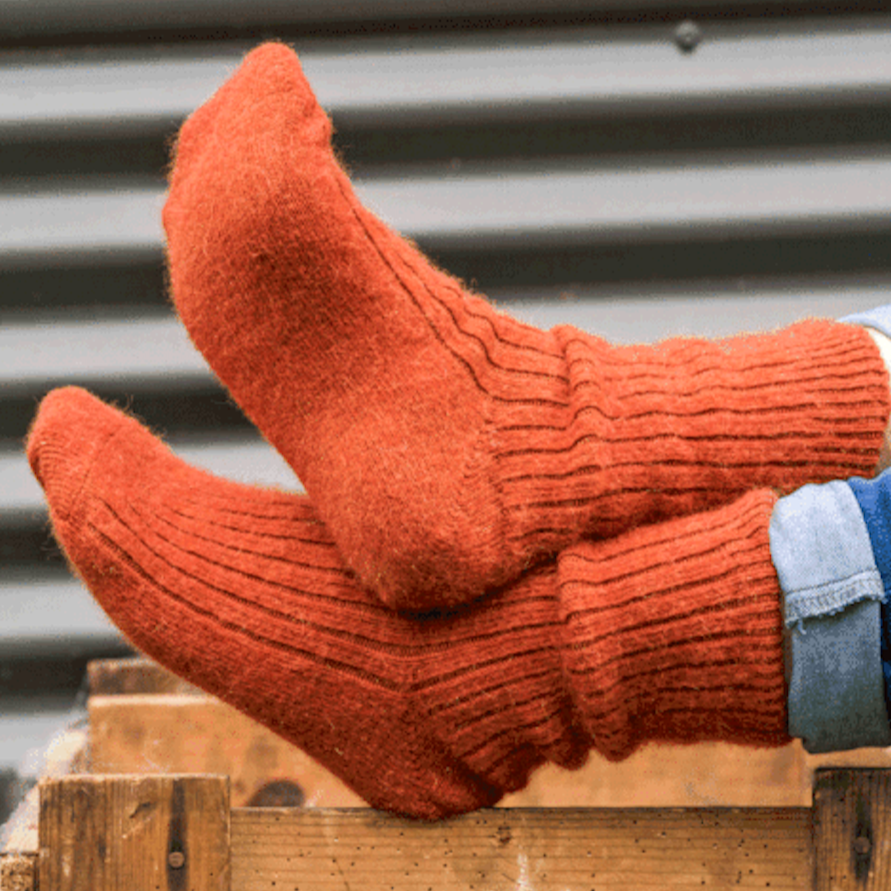 These exceptionally warm socks are made from a luxurious blend of alpaca and wool. The material is soft, supple and smooth. Microscopic air pockets act as insulation to keep warmth in. There is no tight elastic at the top to compress or constrict, meaning these socks are ready to rock all day long!