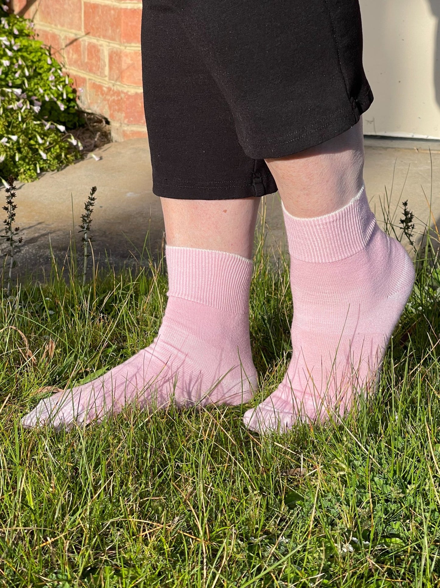 No tight elastic comfort top. Stay up without restricting circulation. May assist diabetics. Small size is standard ladies size. Medium is a standard mens size.