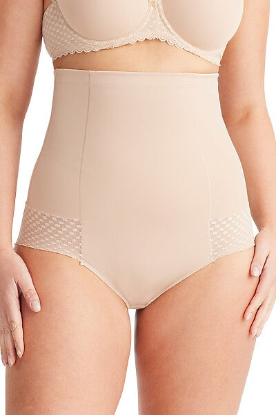 Nancy Ganz Revive Lace High Waisted Brief uses contemporary lace design, super soft fine gauge micro and performance power mesh linings to create the perfect waist shaping silhouette with feminine appeal and superior comfort and fit.